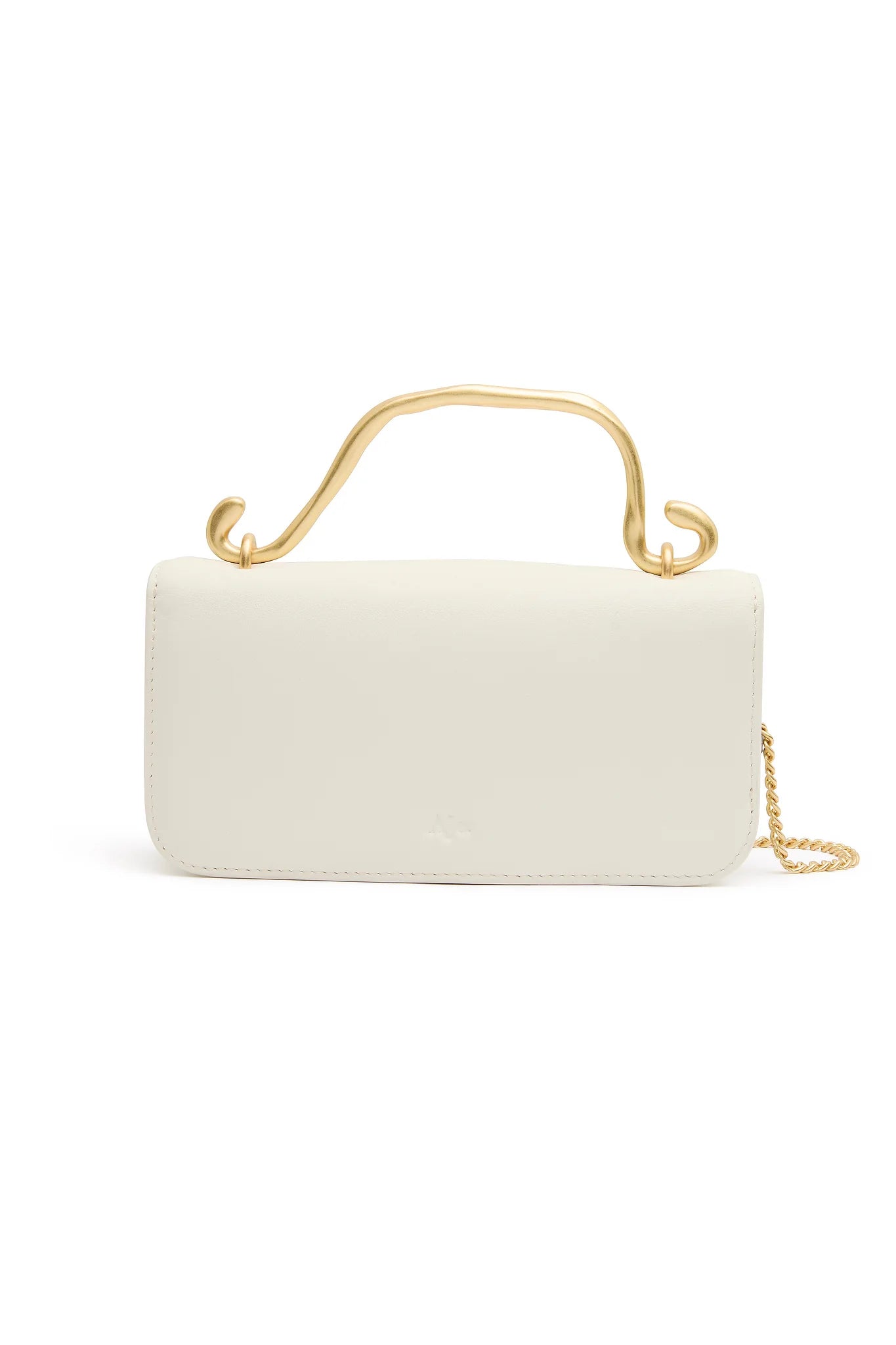 Description: An elegant statement piece crafted from ivory leather, the Alessia Flower Clutch features a sculptural gold-toned flower front, structured top handle, and a detachable chain strap for versatile styling. With a flap closure, magnetic snap, and interior slide pocket, it seamlessly blends beauty and function for your event ensemble.
