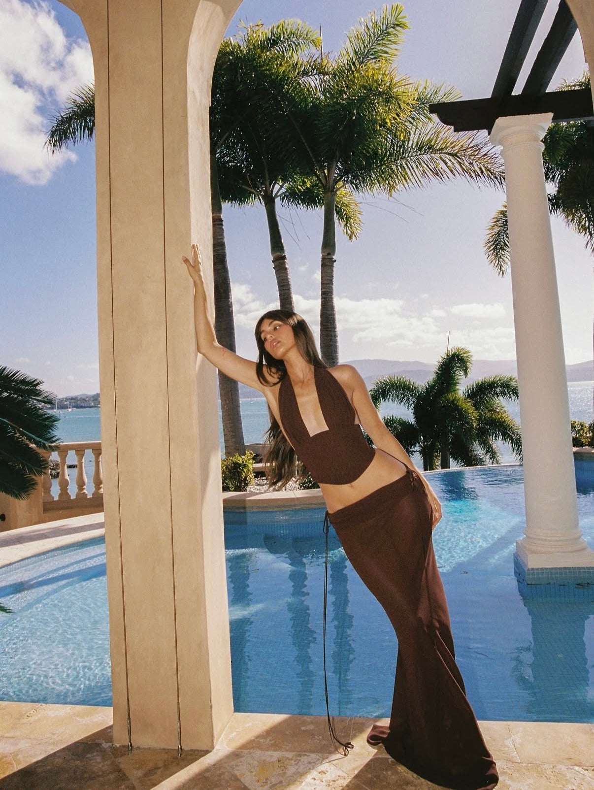 Description: A beautifully refined two-piece, combining the structured Bronte Top with the softly draped Allira Skirt for an effortlessly feminine look. The pieces connect seamlessly to create a sleek, modern silhouette, perfect for formal events or elevated evenings out.