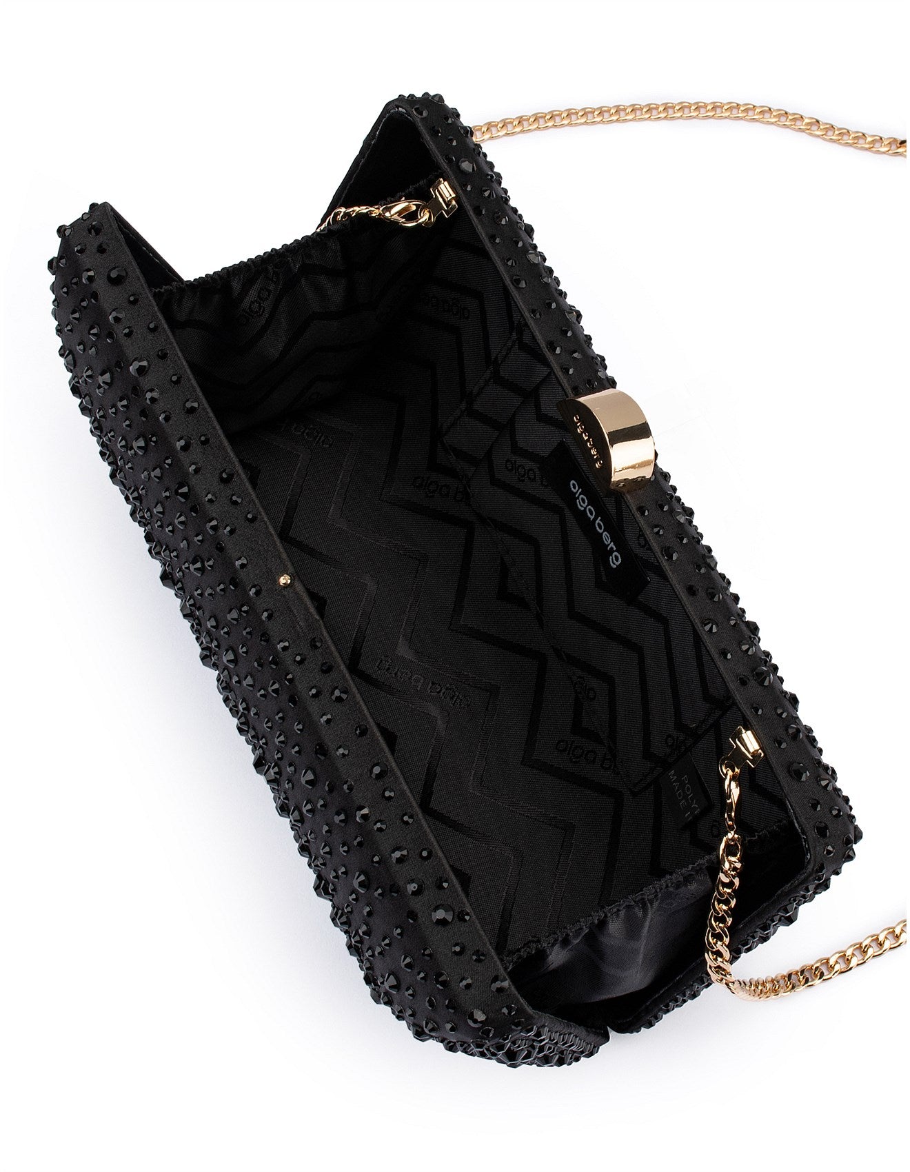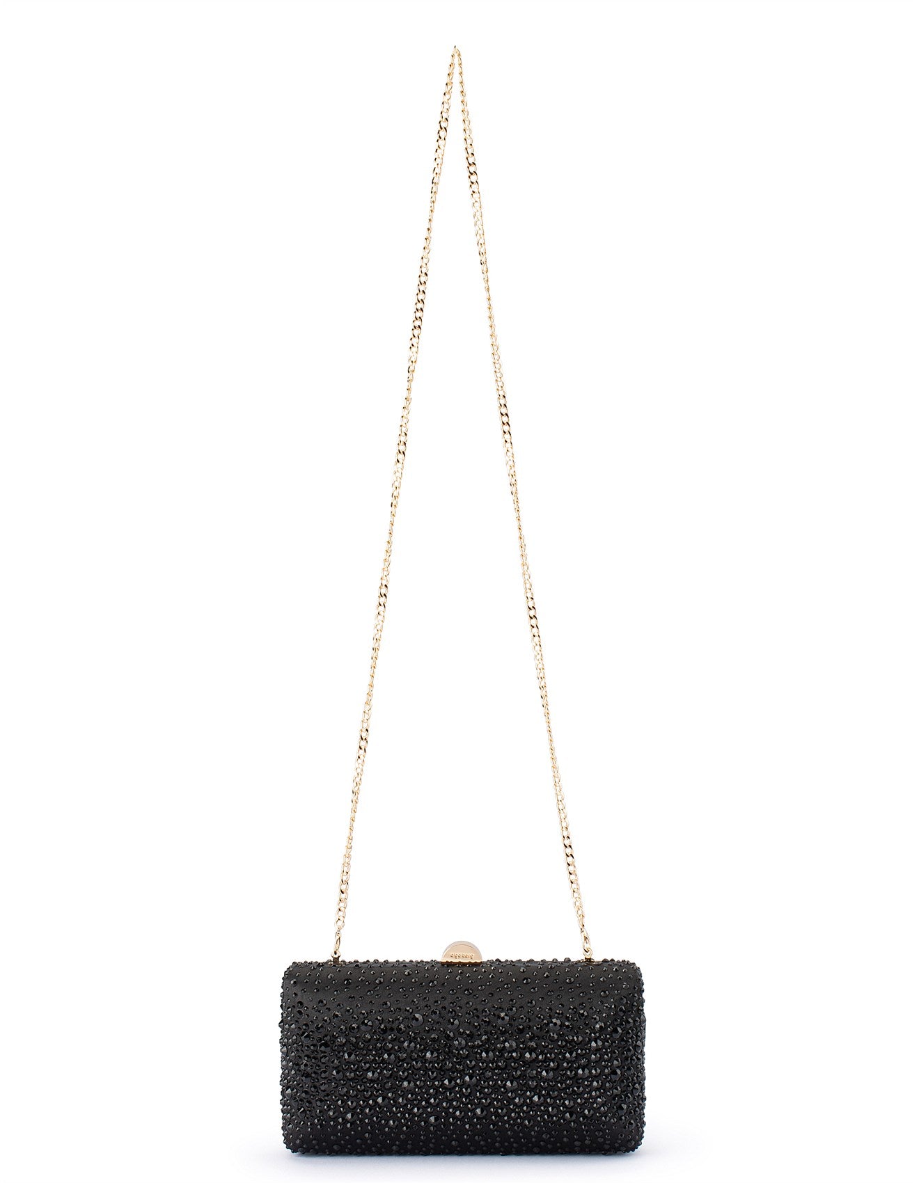Description: Subtle sparkle meets durable elegance with the Kira Hotfix Clutch. Designed with a sleek hardcase shape and finished in graduated hotfix crystals, it brings a modern elegance to evening styling. Use it as a clutch or attach the included shoulder chain to go hands-free—ideal for creating shine in any look.